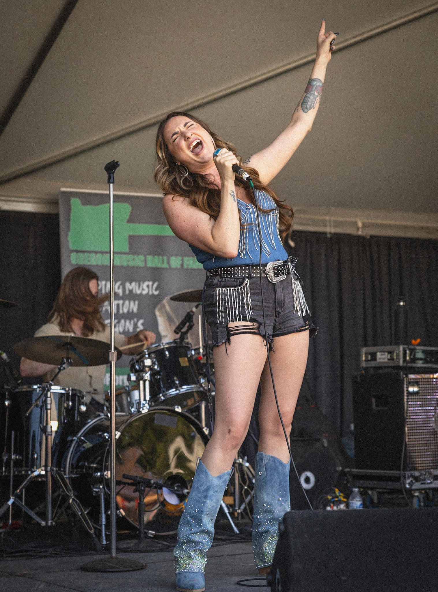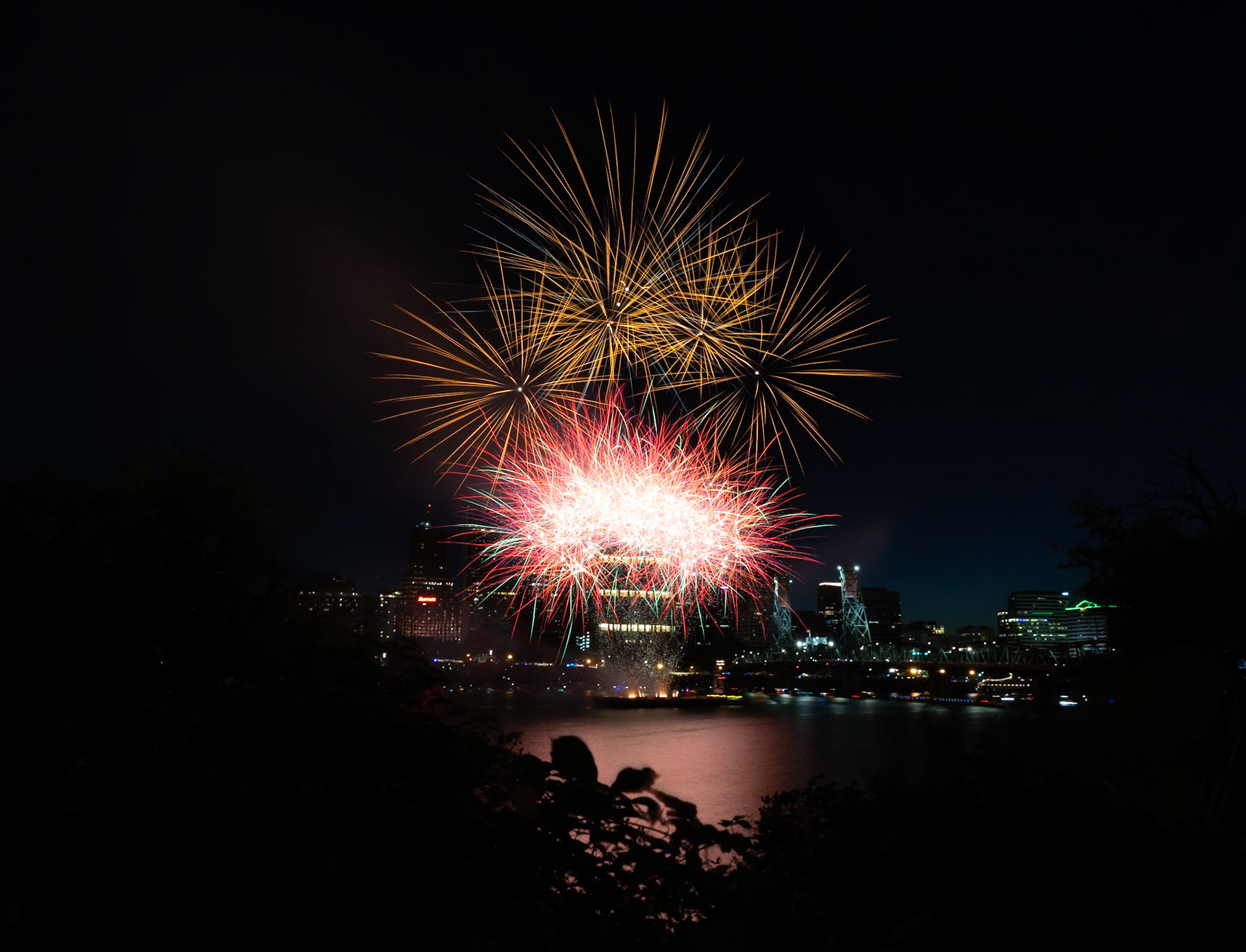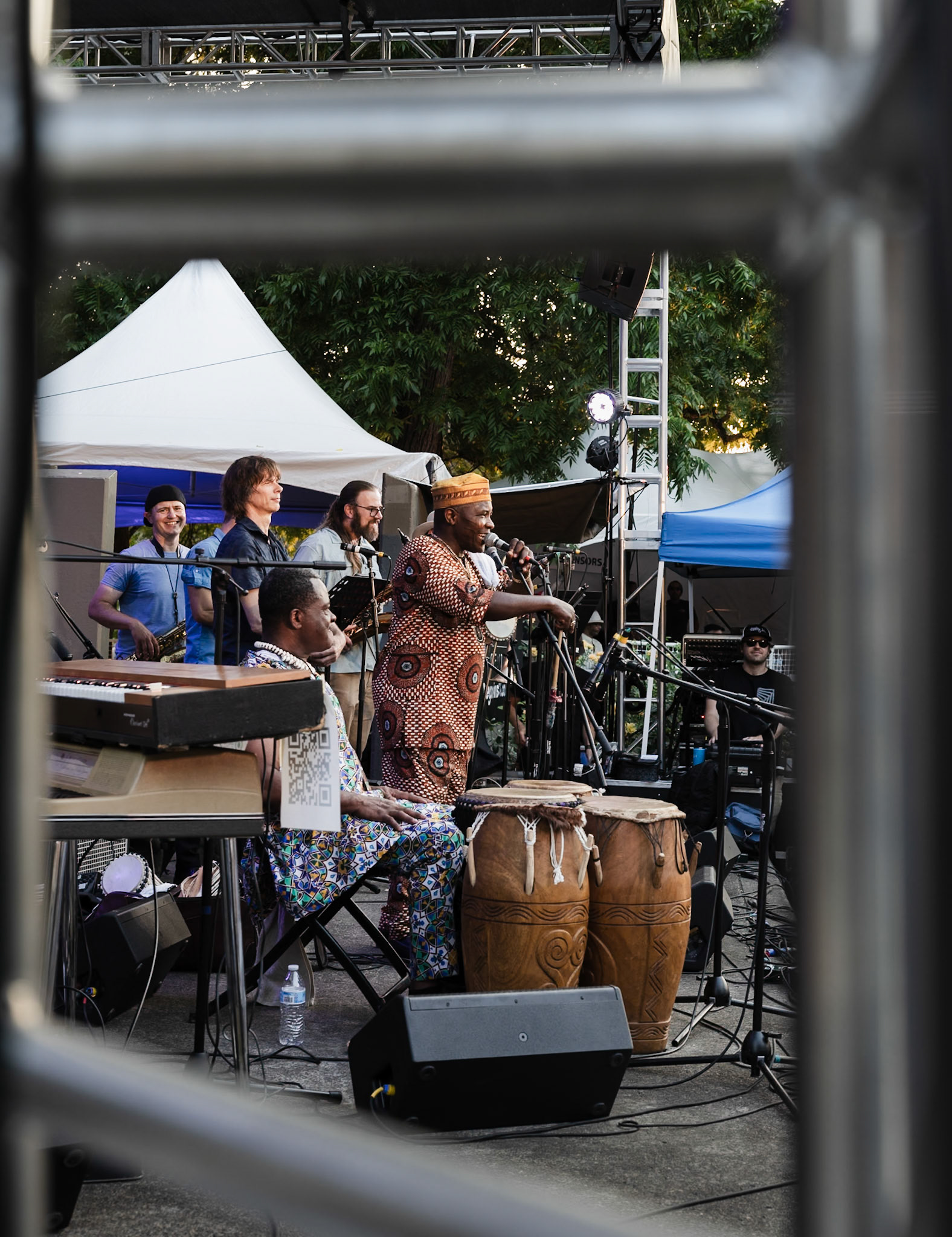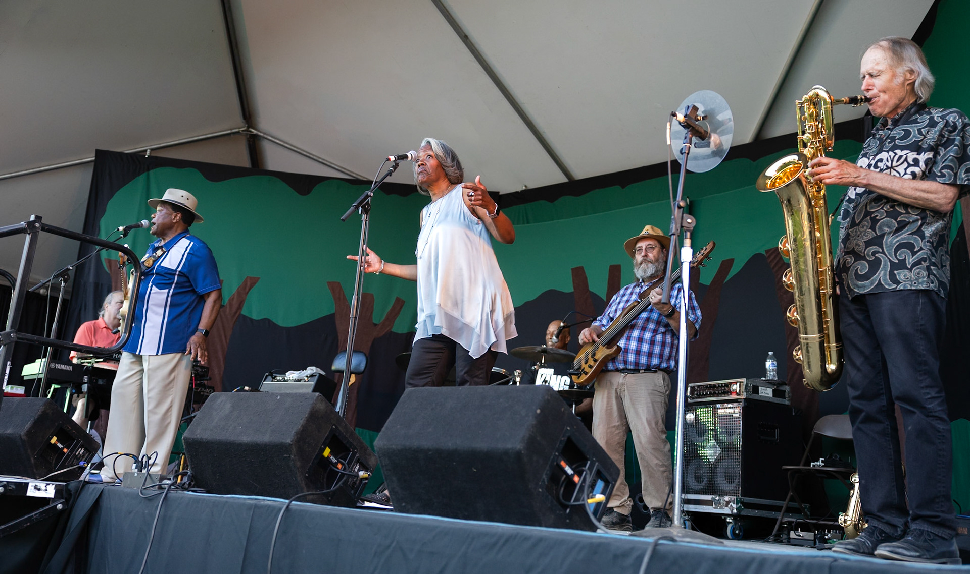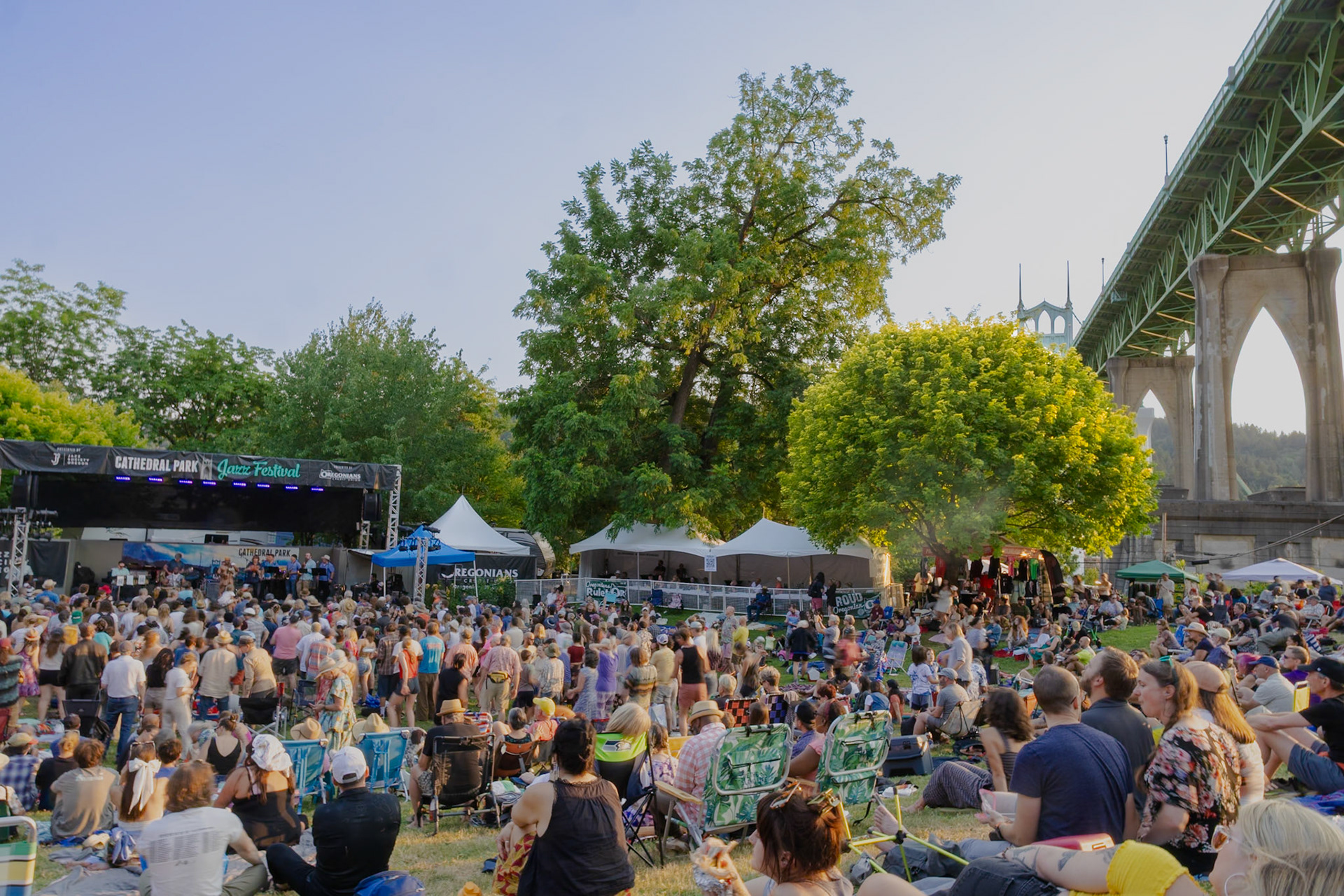 Cathedral Park Jazz Festival in St. Johns neighborhood in Portland, Oregon on July 21, 2024. Zooming out using a long exposure effect.